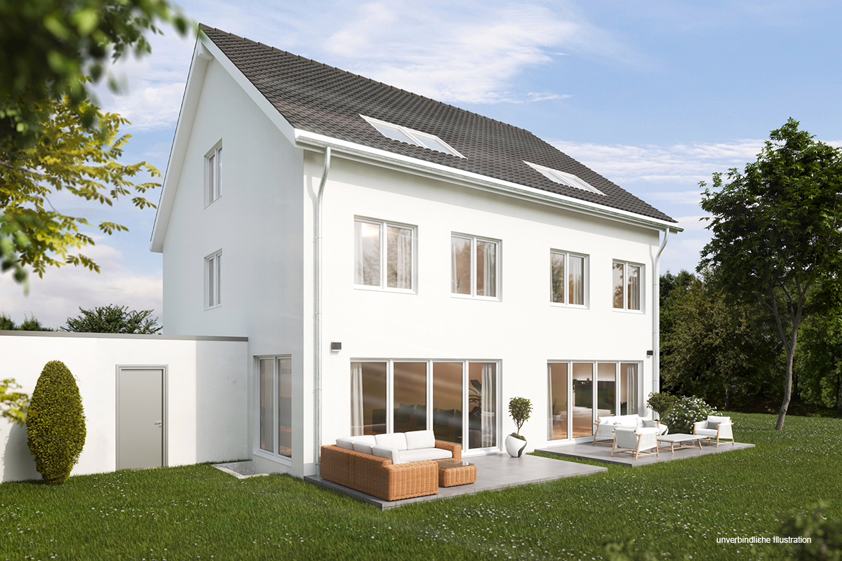 Diese Doppelhaushälfte wird in sehr guter Massivbauweise (Stein auf Stein) mit 3-fach Verglasung, Fußbodenheizung, LWWP (GEG 2024) und Photovoltaik-Anlage erstellt, Energieeffizienzklasse A+.