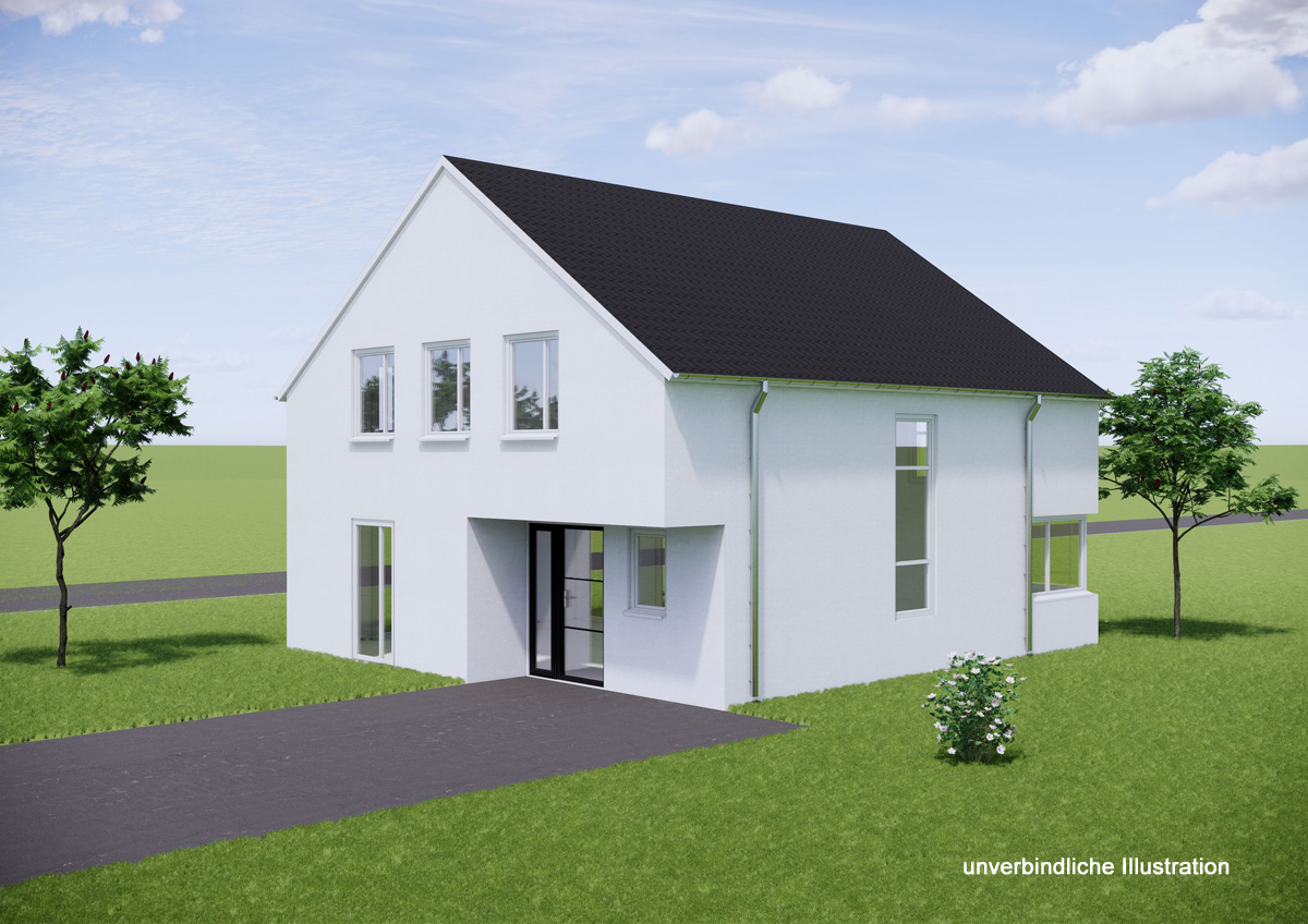 Dieses Einfamilienhaus wird in sehr guter Massivbauweise (Stein auf Stein) mit 3-fach Verglasung, Fußbodenheizung und Luft-Wasser-Wärmepumpe erstellt (GEG 2024). Energieeffizienzklasse A+.
