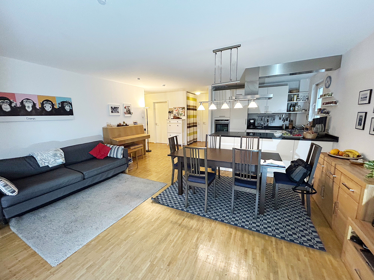 Sie verfügt über 3,5 Zimmer, eine offene Küche, ein Tageslichtbad sowie ein zusätzliches Gäste-WC.